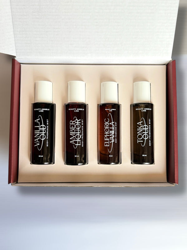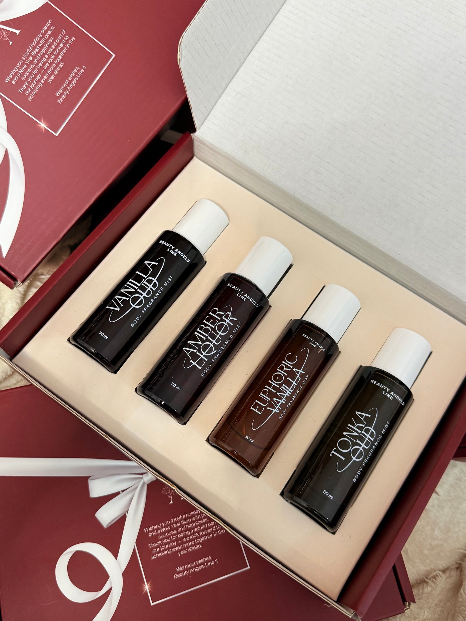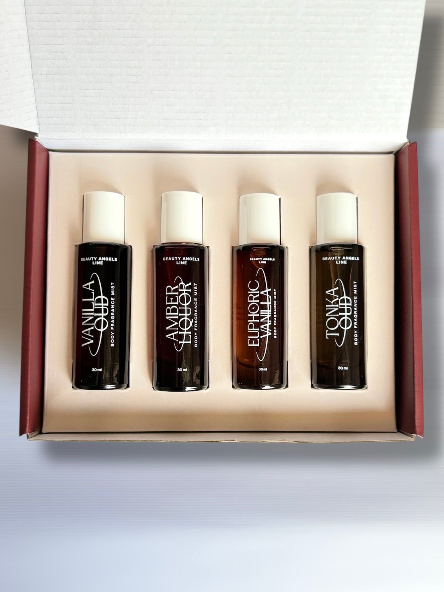 4 body mist set eshte nje nder setet ideale per dhurate.Perbehet nga 4 body mist minisize (30 ml), te cilat vijne ne aromat bestseller